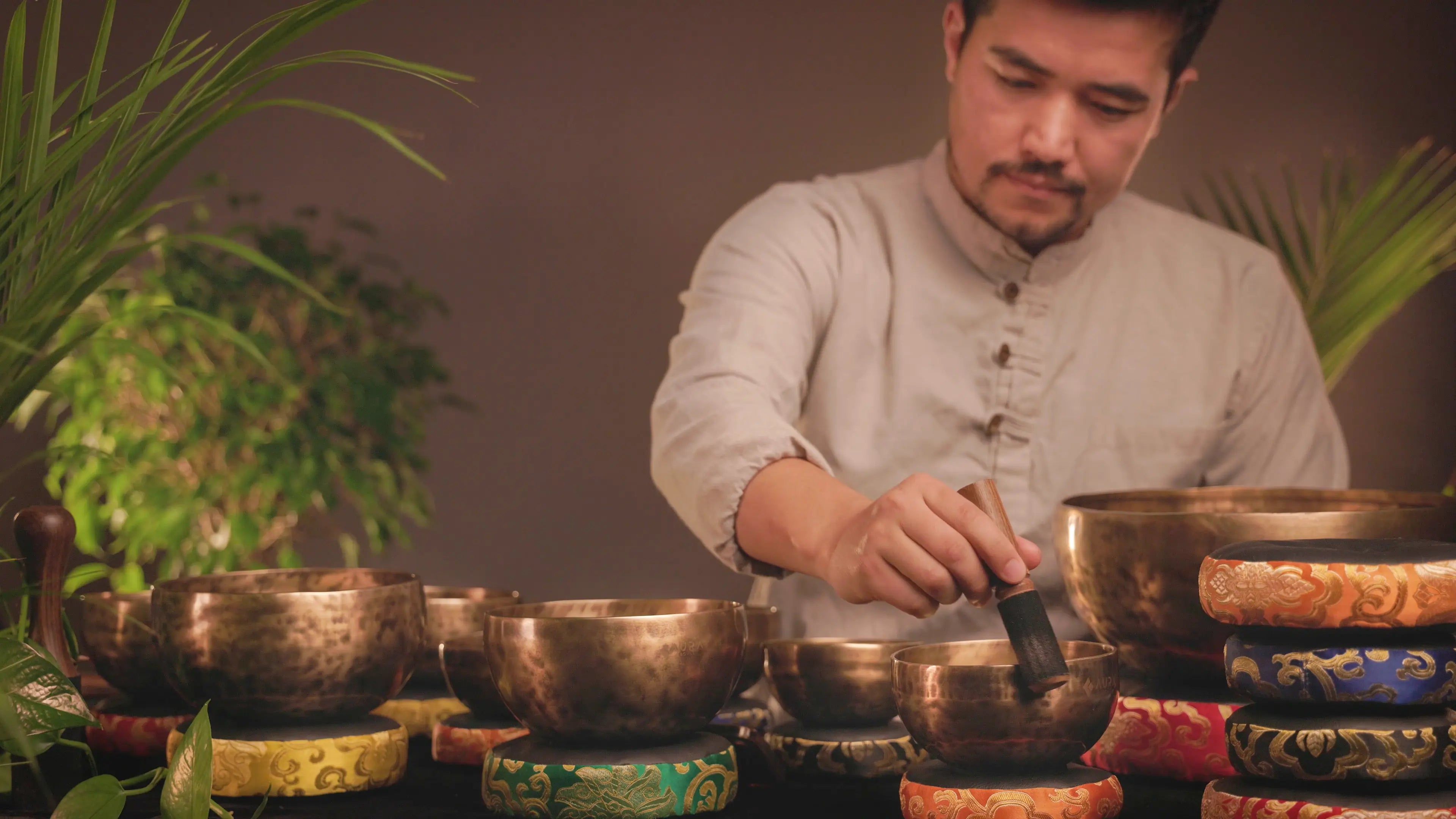 At AuraBowls, our main goal is to provide both sound practitioners and individuals exploring sound and frequency healing with the finest singing bowls in the world. To achieve this, we believe in taking the harder, more meticulous path. This means we're in the workshops and godowns of Nepal & India, digging through thousands of singing bowls, carefully testing and selecting only the finest ones.